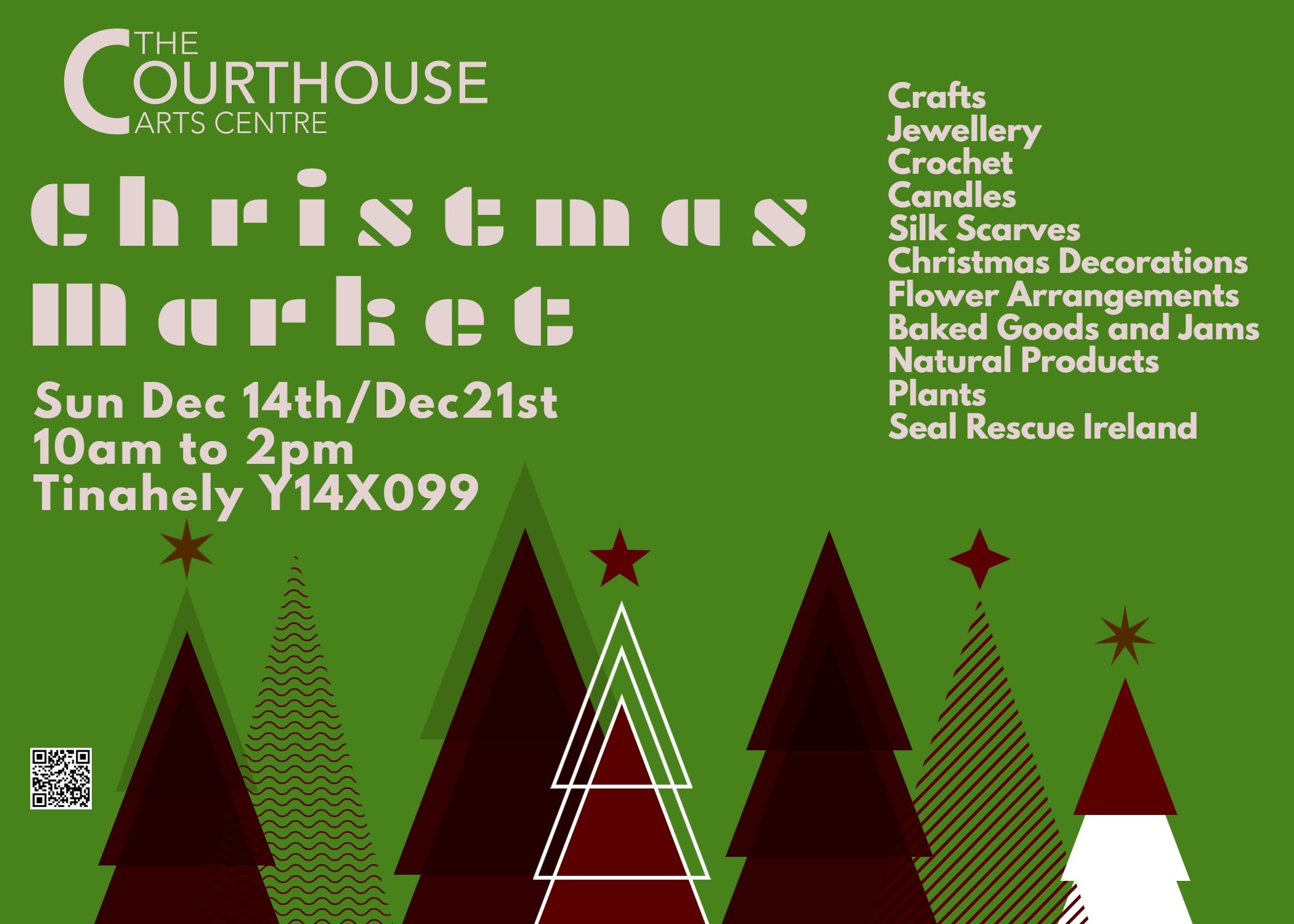 There will be lots of stands selling, Crafts, Jewellery, Crochet, Candles, Silk Scarves, Decorations, Floral arrangements, Home Baked Goods, Jams, Natural Products, Plants. Seal Rescue Ireland will also have a stand..